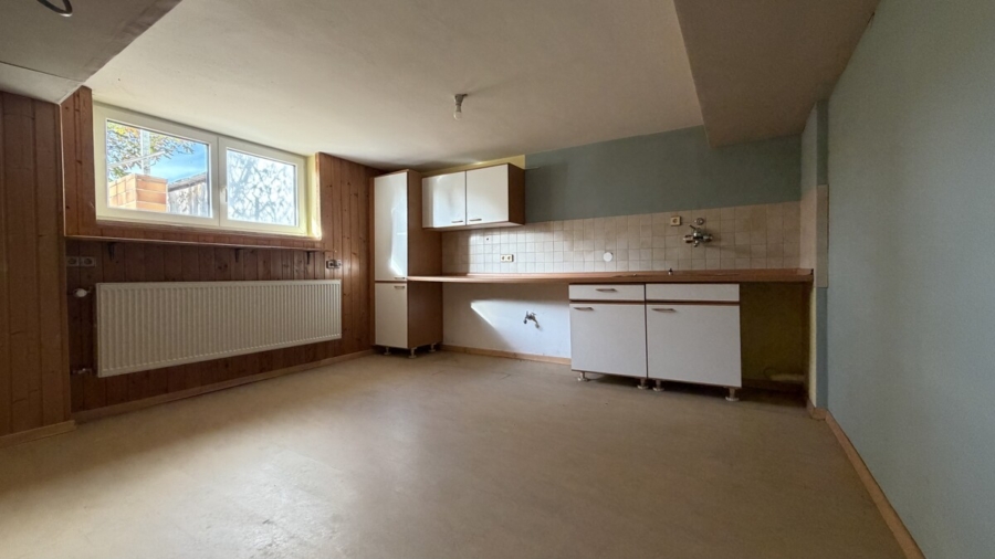 Das Souterrain bietet ein weiteres Badezimmer mit Dusche und WC, zwei zusätzliche Räume sowie eine separate Küche. Über eine Außentreppe besteht direkter Zugang zum großzügigen Garten. Im Keller befinden sich außerdem Abstellräume sowie ein Wasch- und Trockenraum.